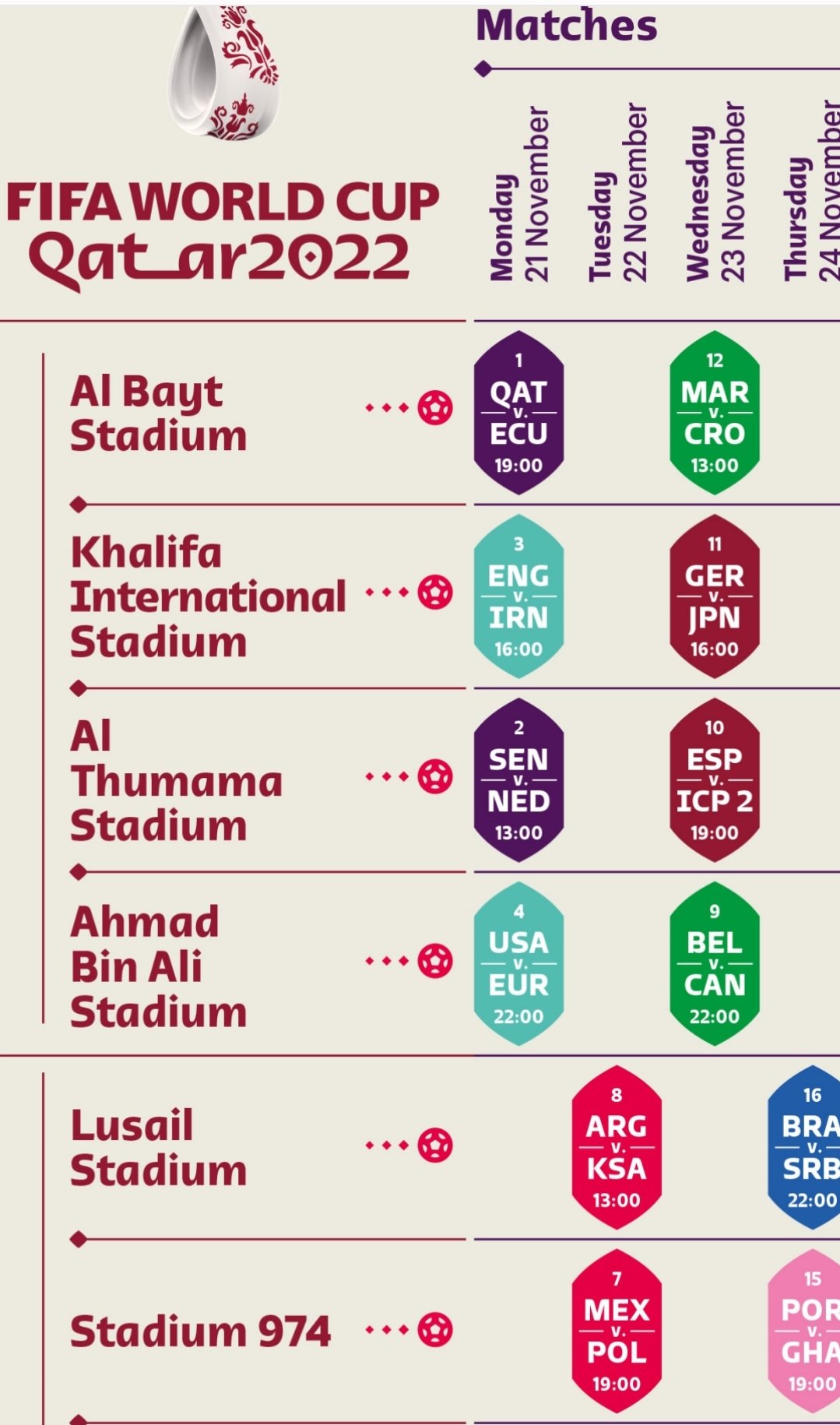 PT 3 am. Friday 25 November Kick-off Time. Khalifa International Stadium Date.